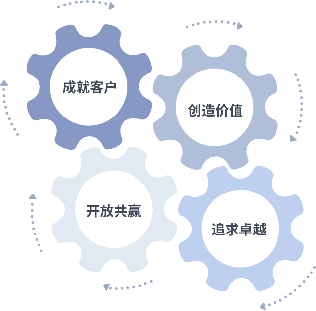 成就客户是一切决策的出发点,,,,创造价值是衡量所有工作的标准,,,追求卓越是bevictor伟德做事做人的态度,,,,开放共赢是bevictor伟德的格局也是最终的结果。。。。价值观的齿轮环环相扣,,推动着组织里的每个人不断向前。。